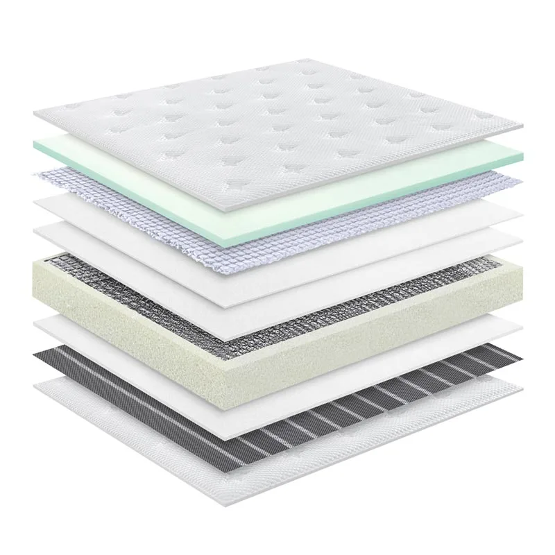 1. آئس سلک فیبرک: دیرپا خشکی اور سانس لینے کی صلاحیت، تیز نیند اور گہرے آرام کے لیے ایک آرام دہ اور پرسکون ماحول فراہم کرتا ہے۔ 2. ہائیڈرو فیلک کاٹن: آرام دہ نیند کے لیے مستقل درجہ حرارت کو برقرار رکھتا ہے۔ 3. حسب ضرورت دبلی پتلی اسپرنگس: نچلی تہہ 1.0 ملی میٹر قطر، 3/4 انچ دبلی پتلی اسپرنگس کا استعمال کرتی ہے جو ایک غیر معمولی نرم ٹچ کے لیے ہے، جس سے اندر سے باہر سے مکمل آرام ملتا ہے۔ 4.3D مساج میٹریل: آئس سلک نِٹڈ فیبرک میٹریس ایک لہراتی سطح کو نمایاں کرتا ہے جو بغیر کسی رکاوٹ کے ہوا کے بہاؤ کی اجازت دیتا ہے، اندرونی سانس لینے کی صلاحیت کو مزید بڑھاتا ہے اور خشکی اور آرام کو یقینی بناتا ہے۔